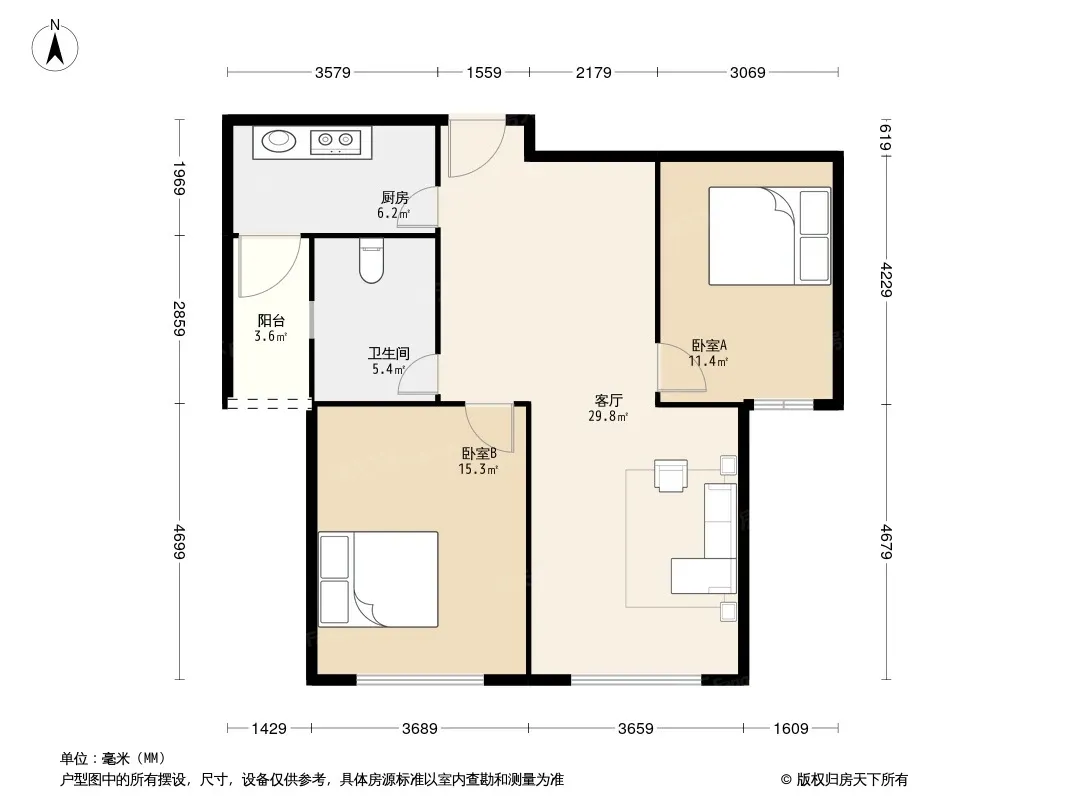 户型齐全,主打户型方正,客厅朝南,双卧朝南,主卧朝南二居