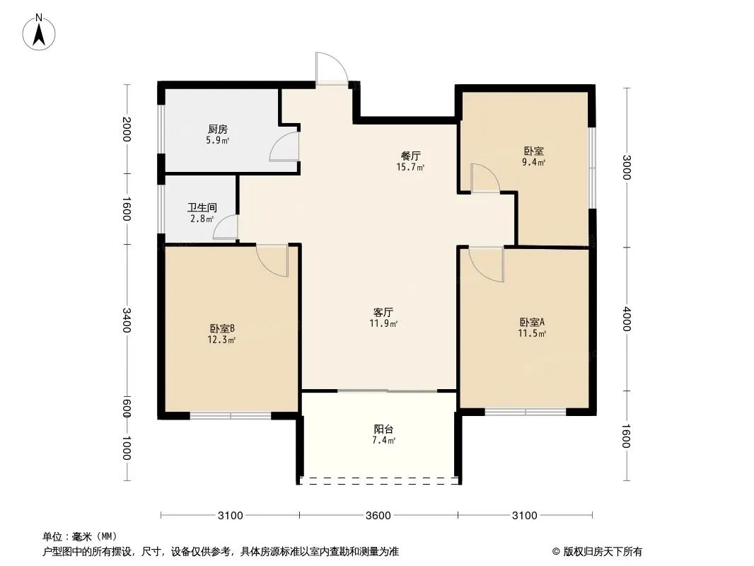 户型齐全,主打南北通透,客厅朝南三居