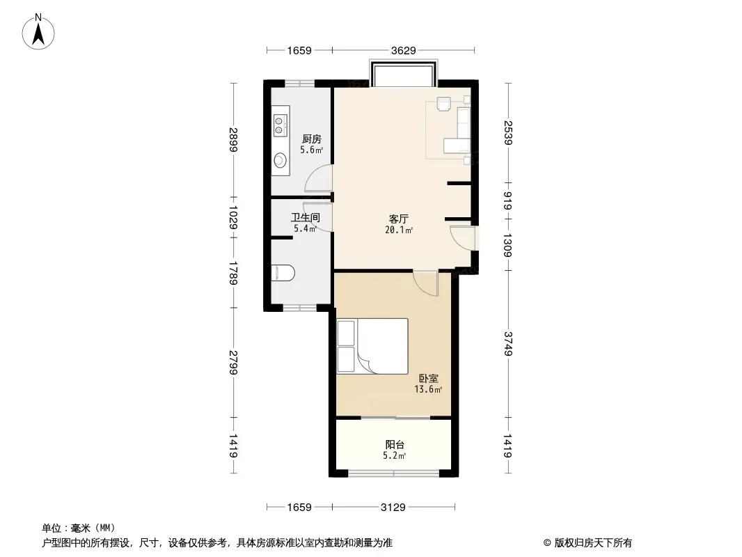户型齐全,主打户型方正,明卫,明厨,客厅朝南一居