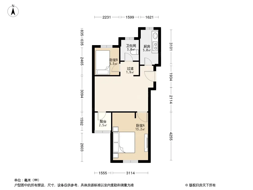 户型齐全,主打户型方正,明卫,明厨,客厅朝南,全明格局二居