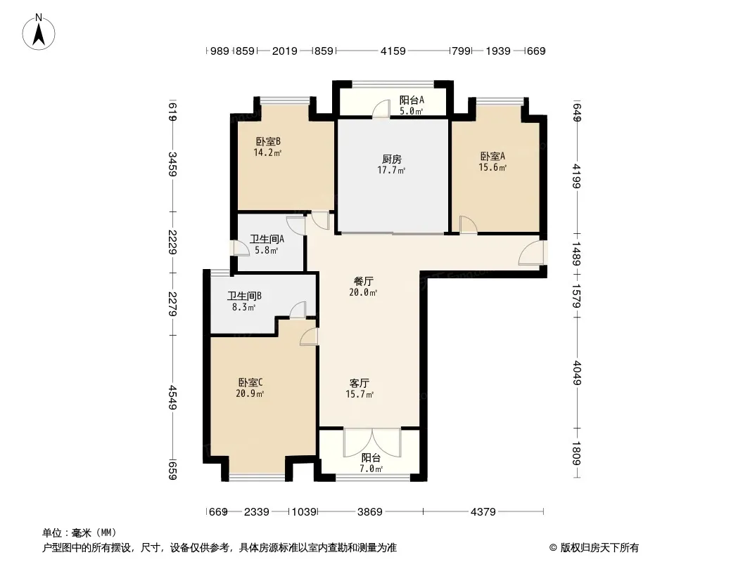 户型齐全,主打南北通透,户型方正,主卧朝南三居