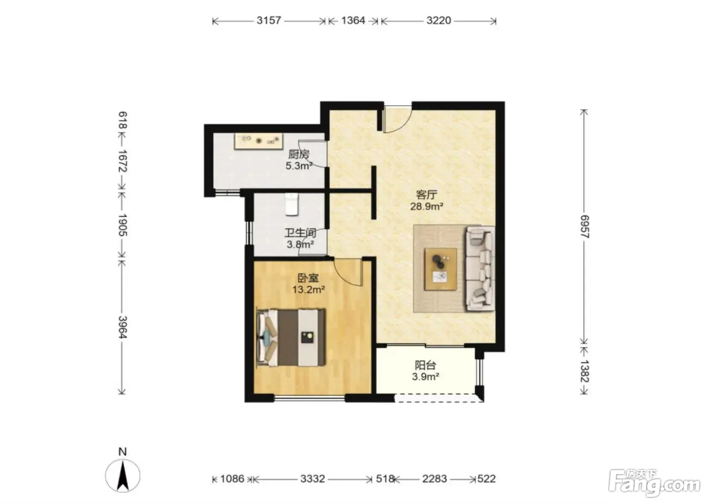 户型齐全,主打南北通透,客厅朝南,主卧朝南,干湿分离二居