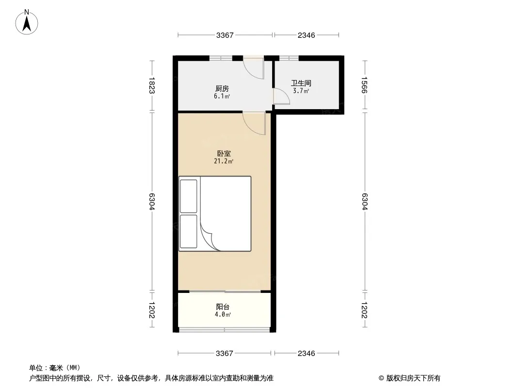 户型齐全,主打明厨,明卫,客厅朝南,全明格局一居