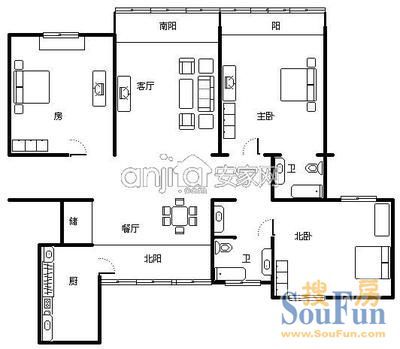 户型齐全,主打户型方正,明卫,独立衣帽间,明厨,双阳台,双卧朝南,主卧朝南三居