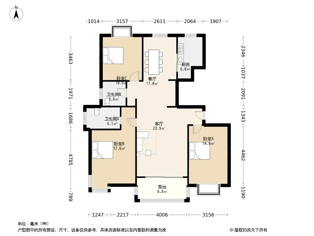 户型齐全,主打户型方正,明厨,明卫,双卧朝南三居