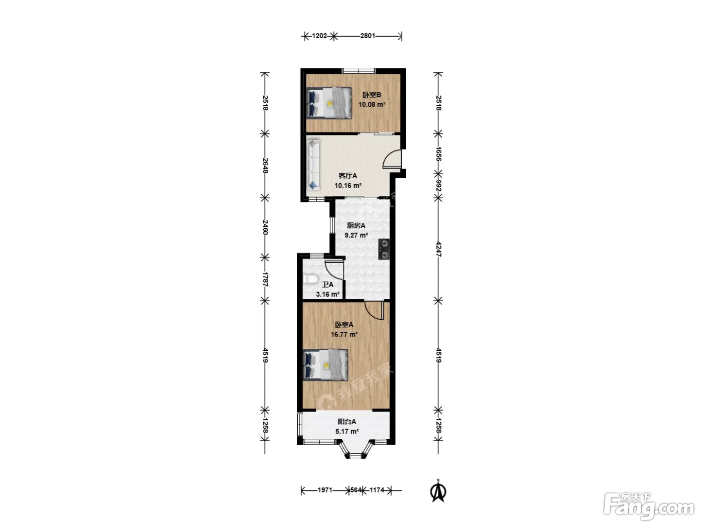 户型齐全,主打户型方正,明厨,明卫,客厅朝南,全明格局,主卧朝南二居
