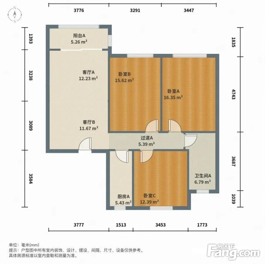 户型齐全,主打南北通透,客厅朝南,卧室朝南,餐客分离三居