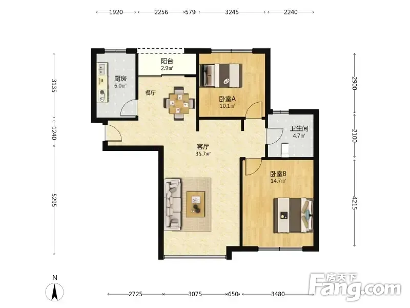 户型齐全,主打户型方正,明厨,客厅朝南,主卧朝南,明卫,独立衣帽间二居