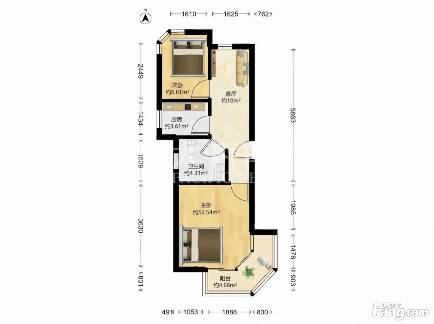 户型齐全,主打户型方正,明厨,明卫,客厅朝南,主卧朝南二居