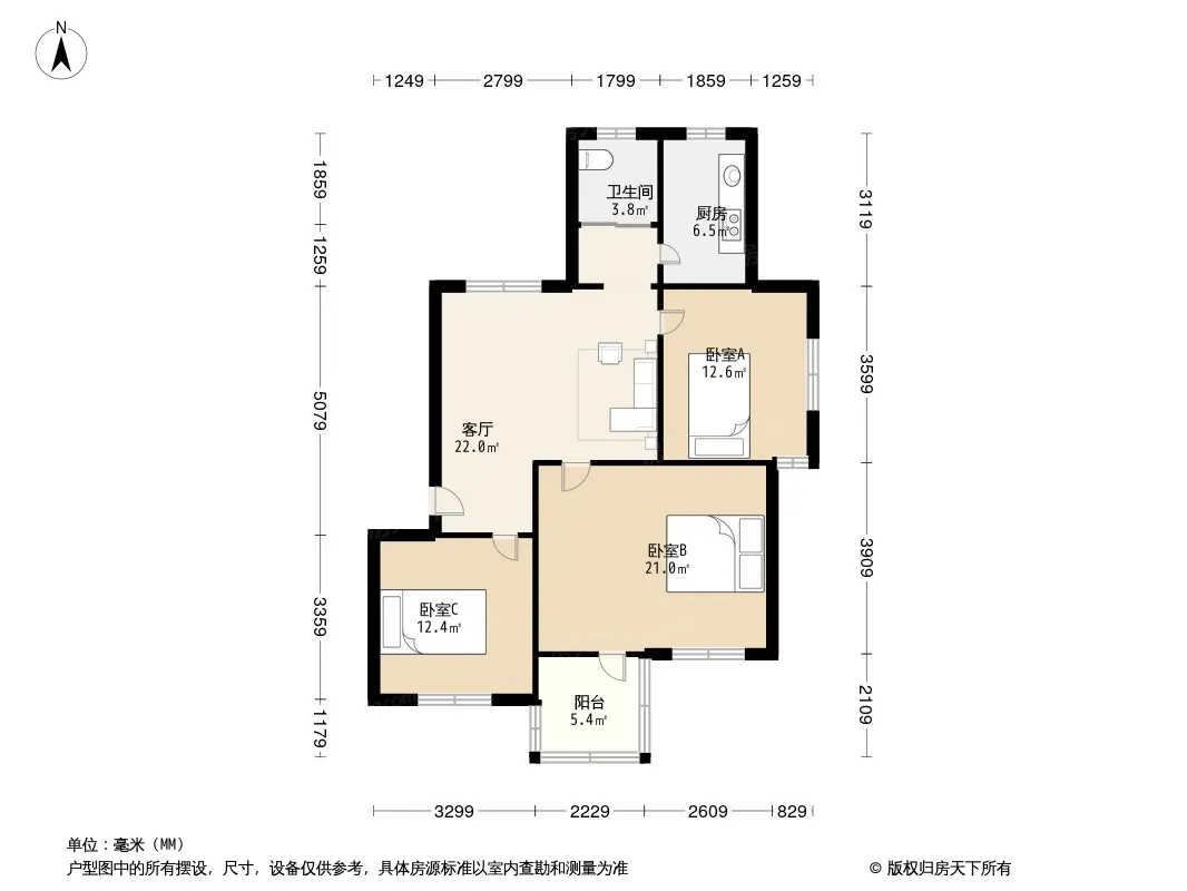 户型齐全,主打户型方正,明厨,明卫,客厅朝南,双卧朝南,主卧朝南三居