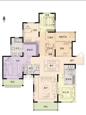 房屋拥有相对宽松的尺寸,布局通透,动静分离,设计豪华