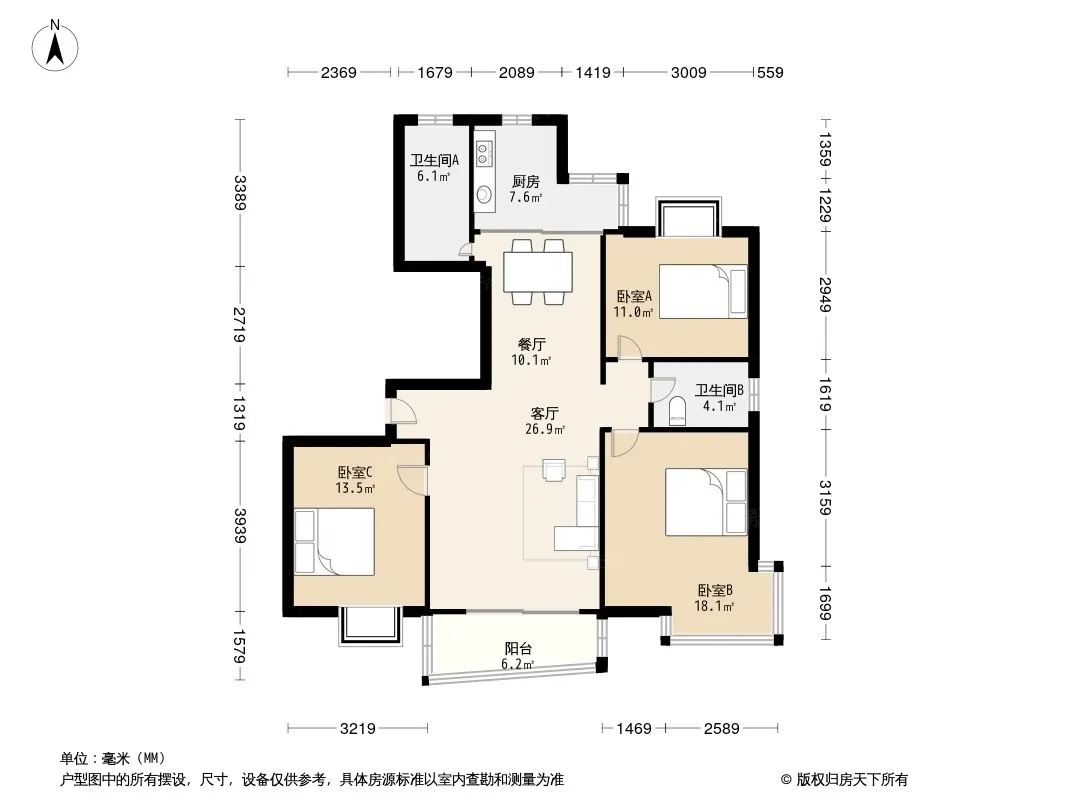 户型齐全,主打户型方正,明卫,双卧朝南,主卧朝南三居
