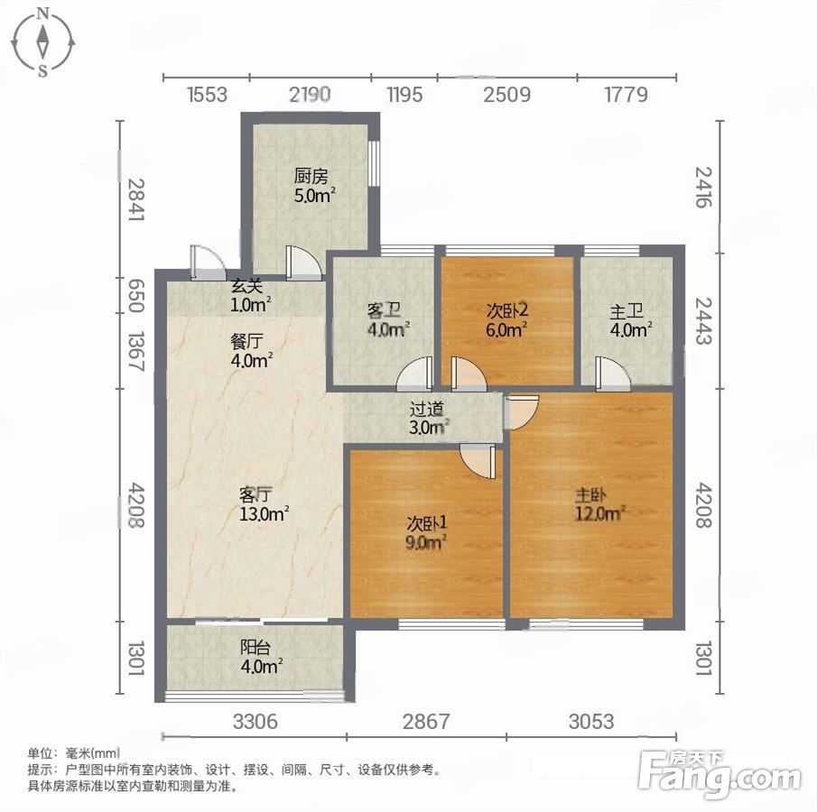 户型齐全,主打全明格局,双卧朝南,带露台三居