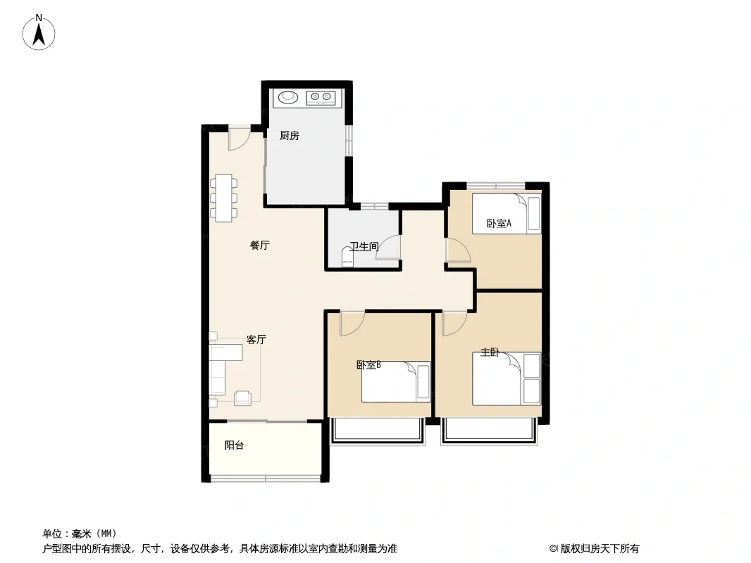 户型齐全,主打全明格局,户型方正三居
