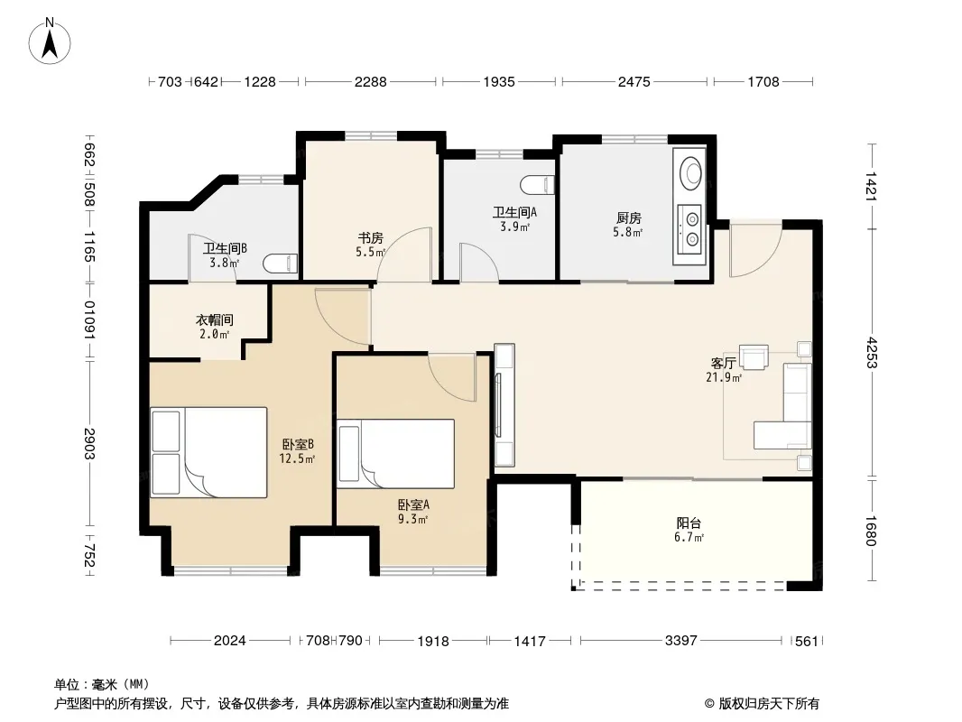 户型齐全,主打户型方正,明卫,明厨,双卧朝南,主卧朝南三居