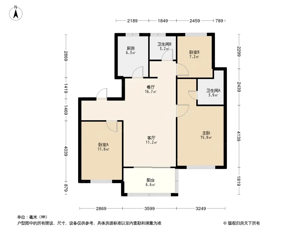 户型齐全,主打南北通透,户型方正三居