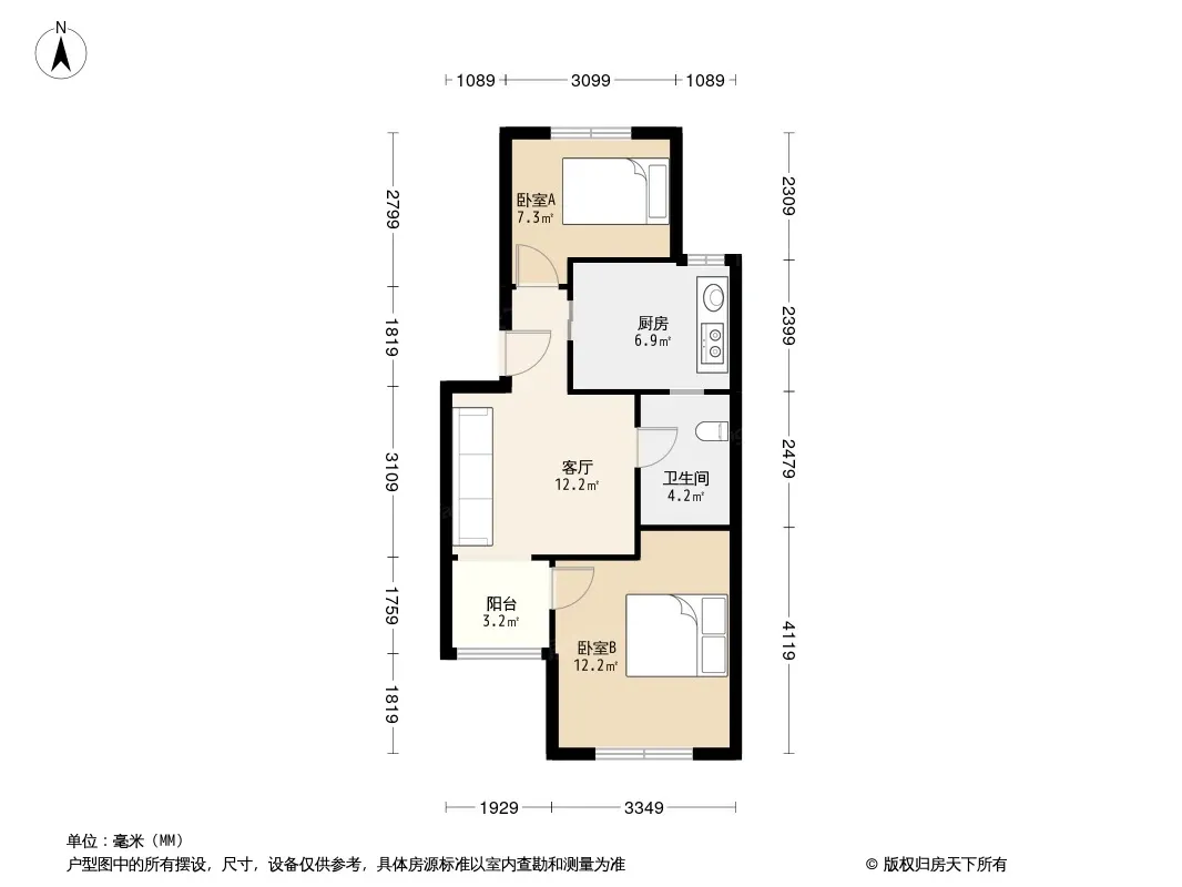 户型齐全,主打明厨,明卫,客厅朝南,全明格局,主卧朝南二居