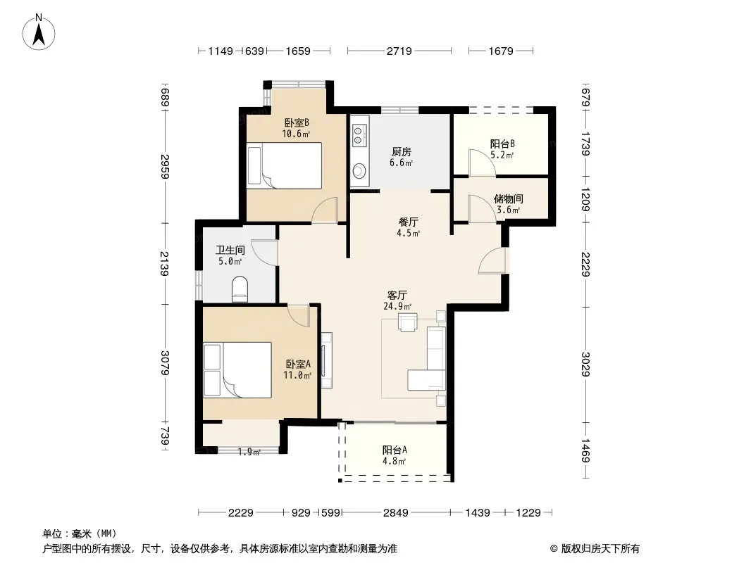 户型齐全,主打户型方正,明厨,明卫三居