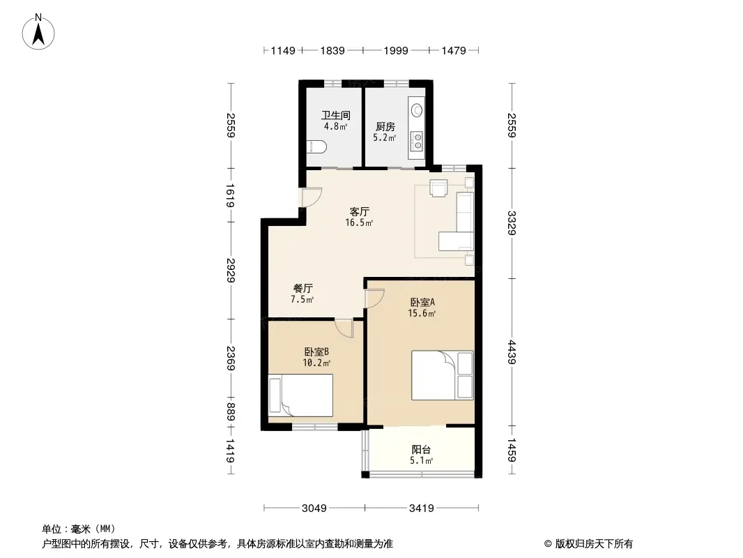 户型齐全,主打户型方正,明卫,明厨,客厅朝南二居
