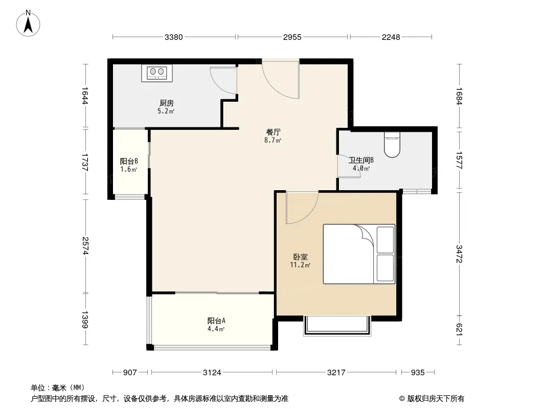 美岸栖庭 1室2厅 南