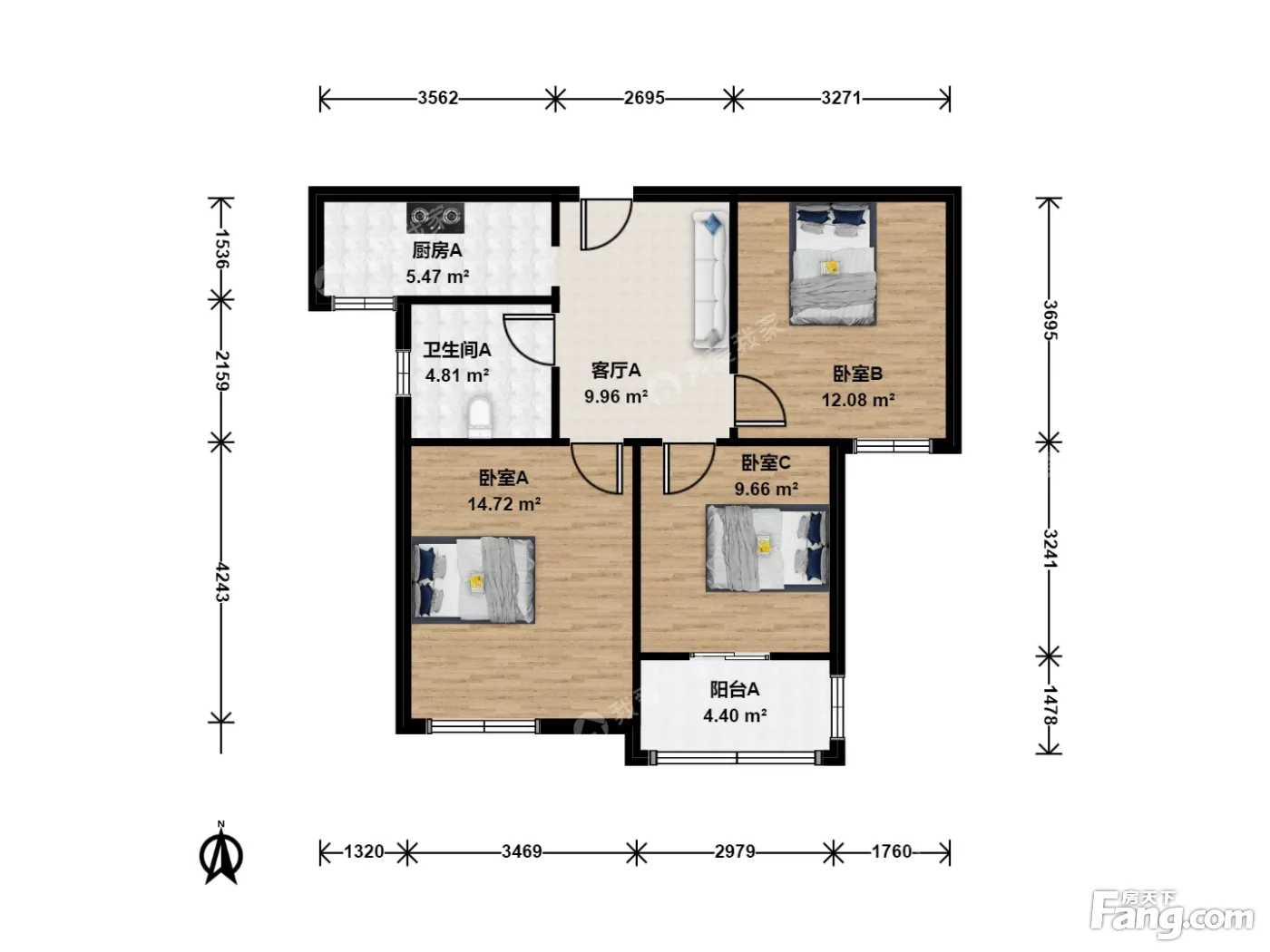 户型介绍:此房户型为3室1厅1卫,建筑面积为74.5平米,朝向为南。