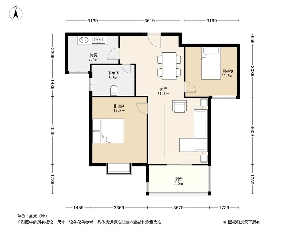 户型齐全,主打户型方正,明卫,明厨,客厅朝南,全明格局,双卧朝南,主卧朝南二居