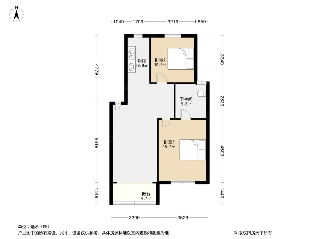 户型齐全,主打明卫,明厨,客厅朝南,双卧朝南三居