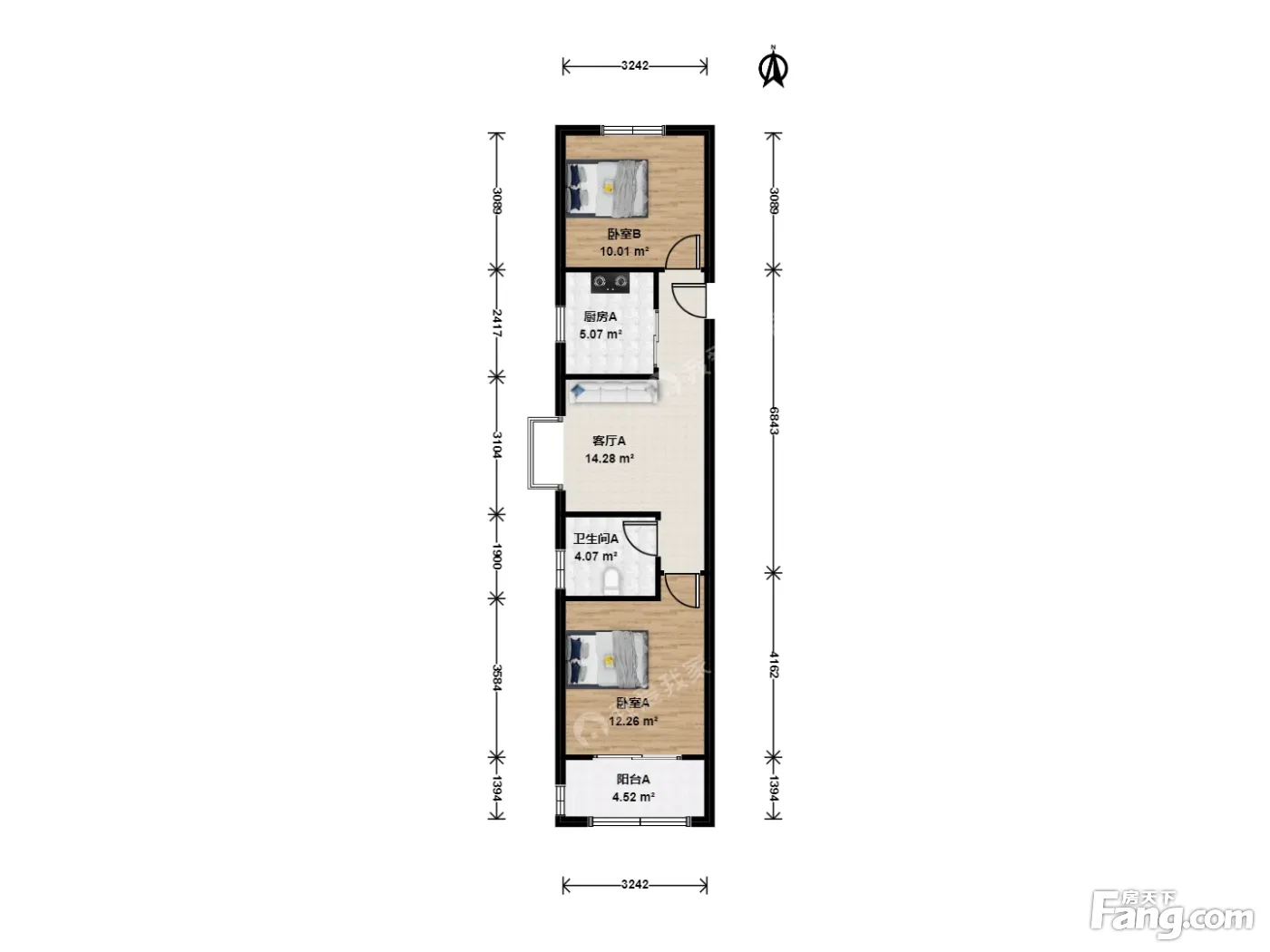 户型介绍:此房户型为2室1厅1卫,建筑面积为61.71平米,朝向为南。