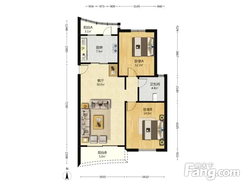 户型齐全,主打户型方正,明卫,主卧朝南二居