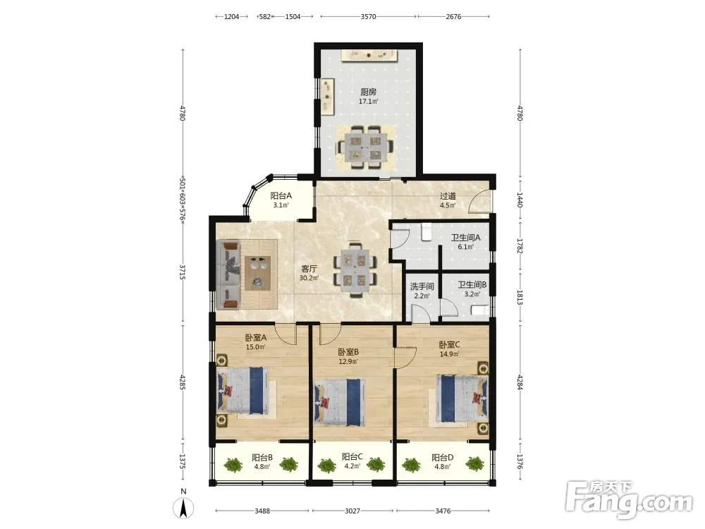 房屋户型方正,景观布局合理,设计实用,空间舒适,格局优越,采光通风良好