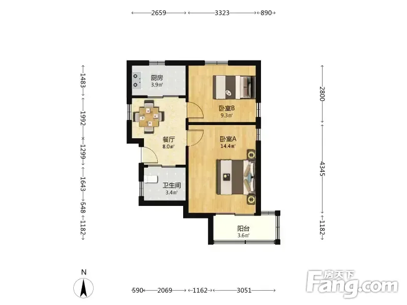 户型齐全,主打户型方正,明厨,主卧朝南二居