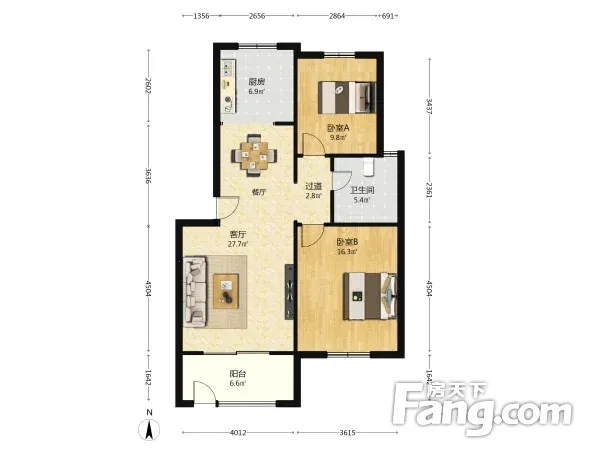 户型齐全,主打户型方正,明卫,明厨,主卧朝南三居