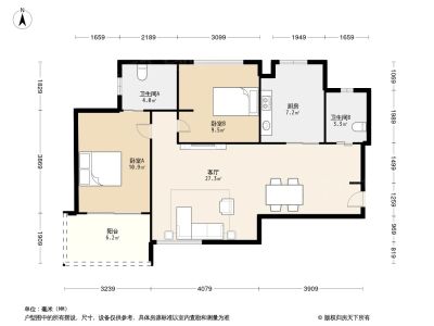 2室2厅 123.92平 南