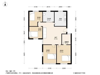 户型齐全,主打户型方正,明卫,明厨,客厅朝南,全明格局三居