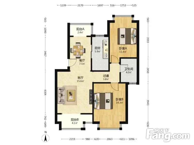 户型齐全,主打户型方正,明厨,明卫,主卧朝南二居
