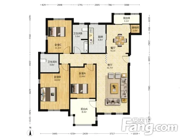 万科阳光苑 3室2厅 南 北