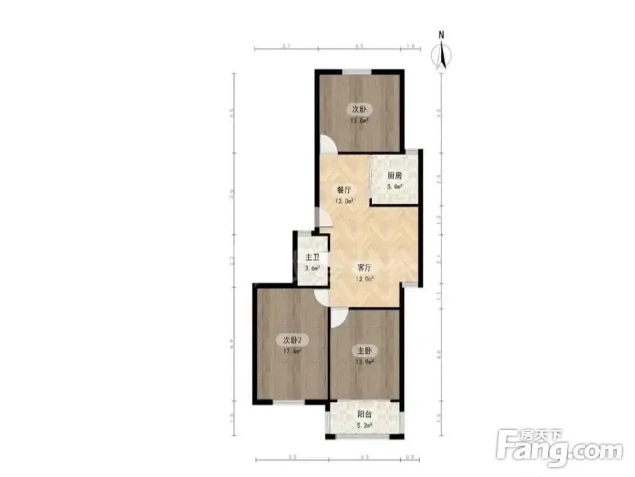 此房M五V1,一梯两户,全明户型,两间朝南,一间朝北