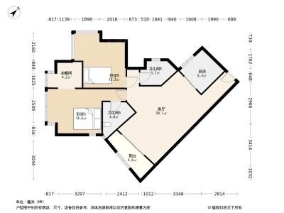 户型齐全,主打明卫,独立衣帽间,主卧朝南二居