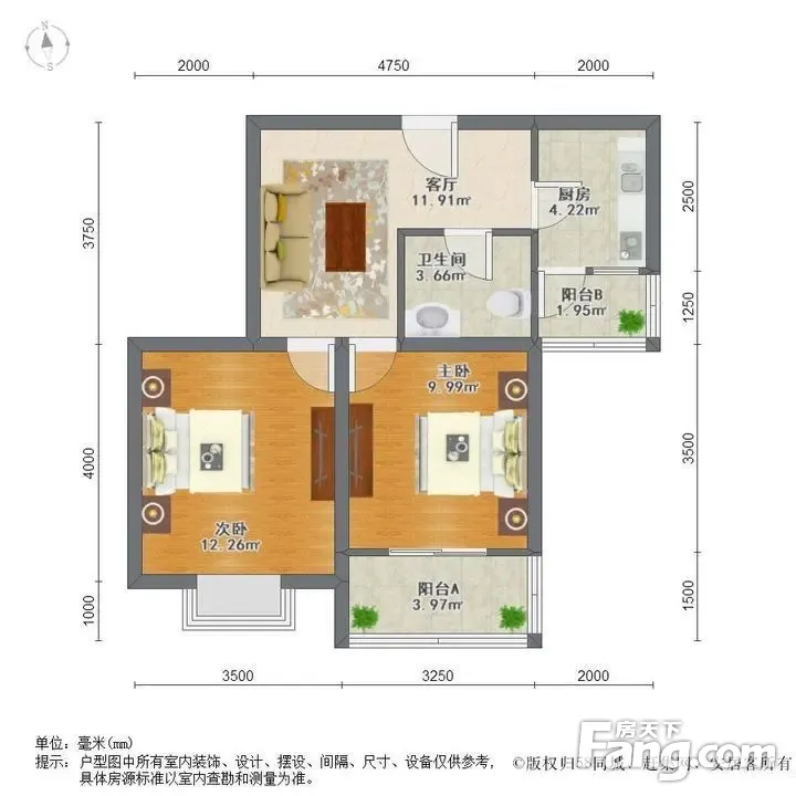 户型齐全,主打户型方正,双阳台,主卧朝南二居