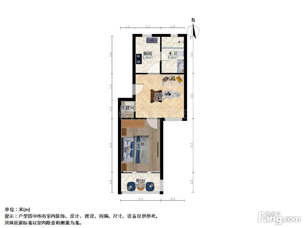 户型介绍:此房户型为1室1厅1卫,建筑面积为51平米,朝向为南北。厅朝南 厨卫朝北 全明全亮户型。