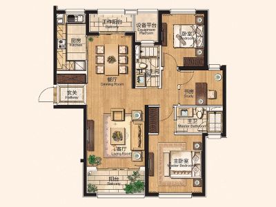 户型齐全,主打户型方正,明卫,独立衣帽间,明厨,双阳台,双卧朝南四居