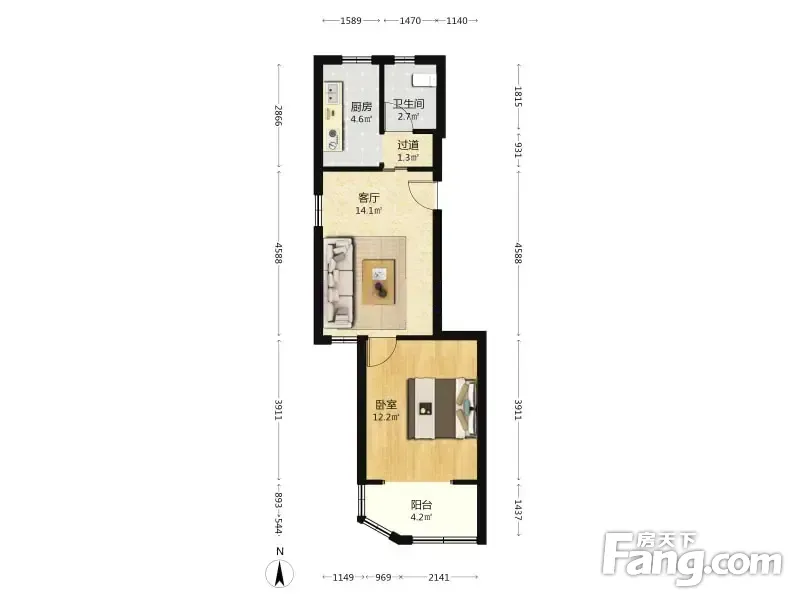 户型齐全,主打明卫,明厨,客厅朝南,全明格局二居