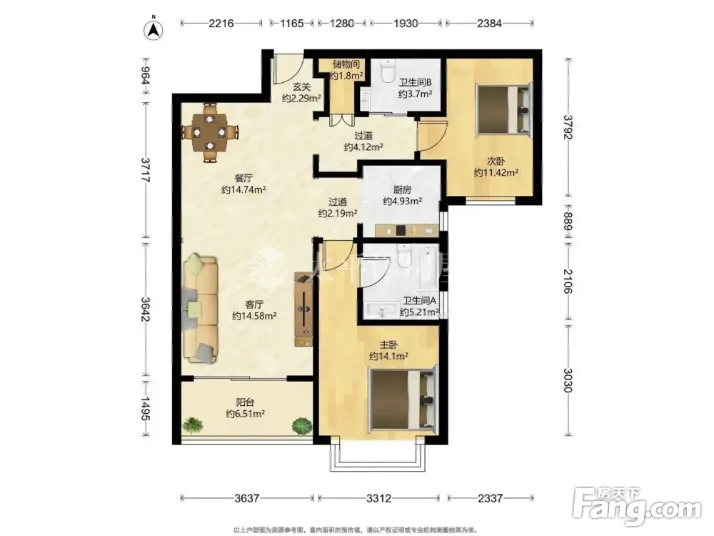 户型齐全,主打户型方正,明卫,双阳台,双卧朝南,主卧朝南三居