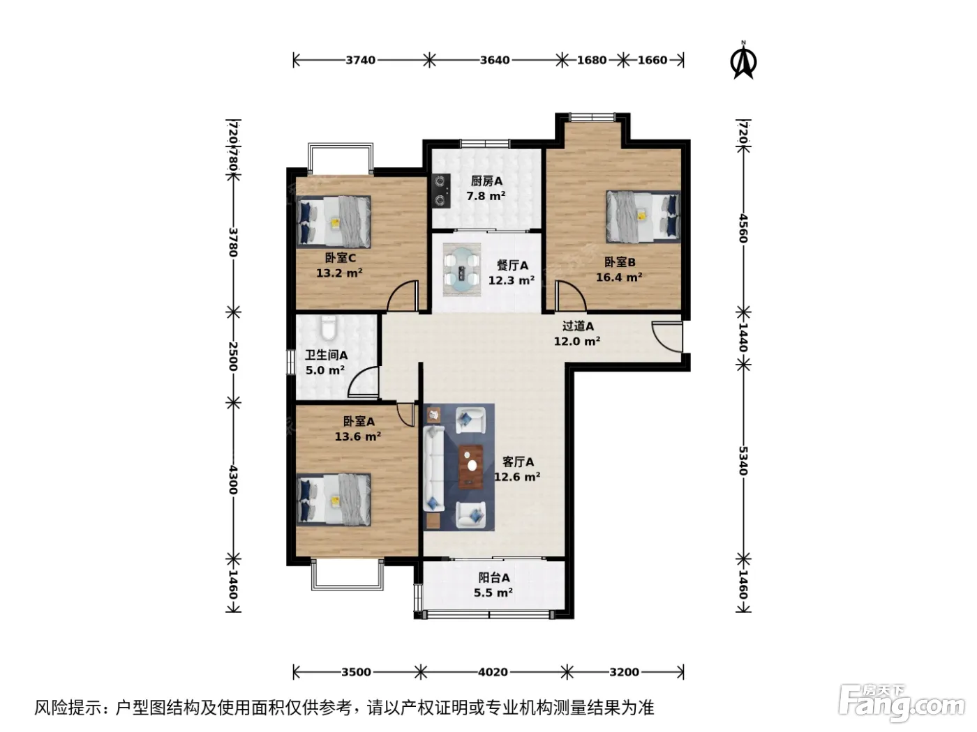 华滨家园 3室1厅 南 北