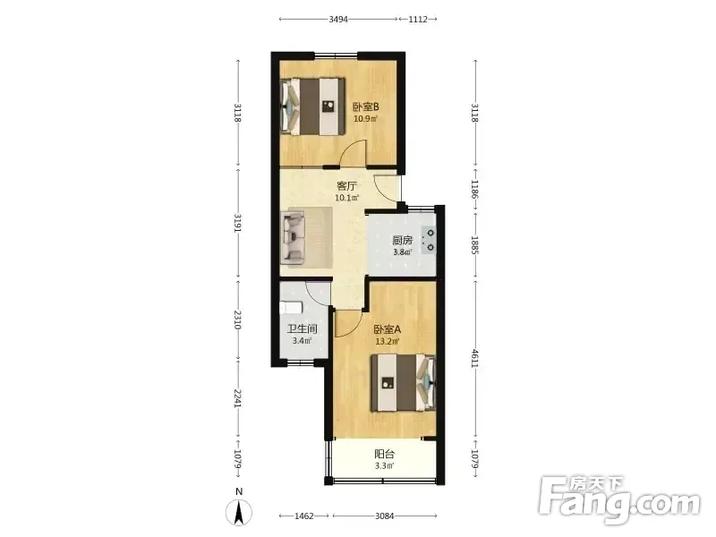 户型齐全,主打户型方正,明卫,明厨,客厅朝南二居
