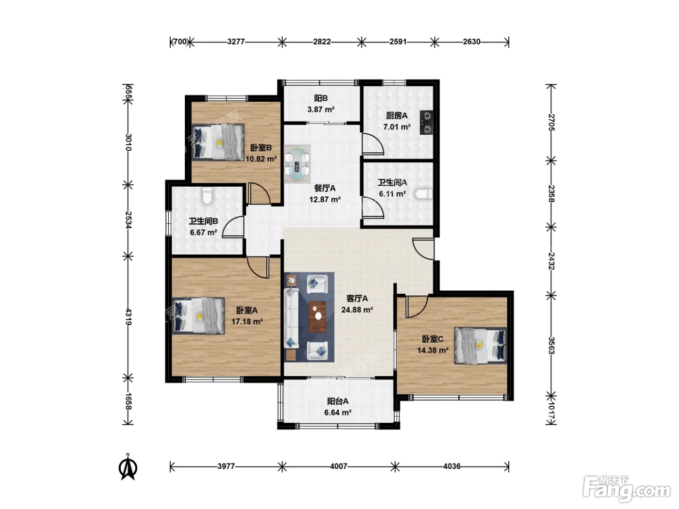 户型介绍:此房户型为3室2厅2卫,建筑面积为112.28平米,朝向为南北。
