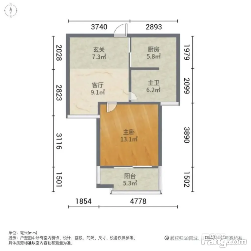 户型介绍:此房户型为1室1厅1卫,建筑面积为55.08平米,朝向为南。