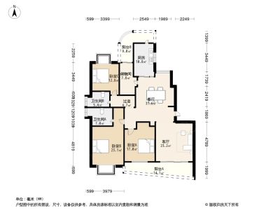 户型介绍:此房户型为3室2厅2卫,建筑面积为159.67平米,朝向为南北。