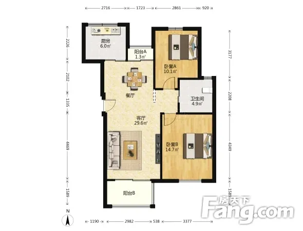 户型齐全,主打户型方正,明卫,明厨,主卧朝南三居