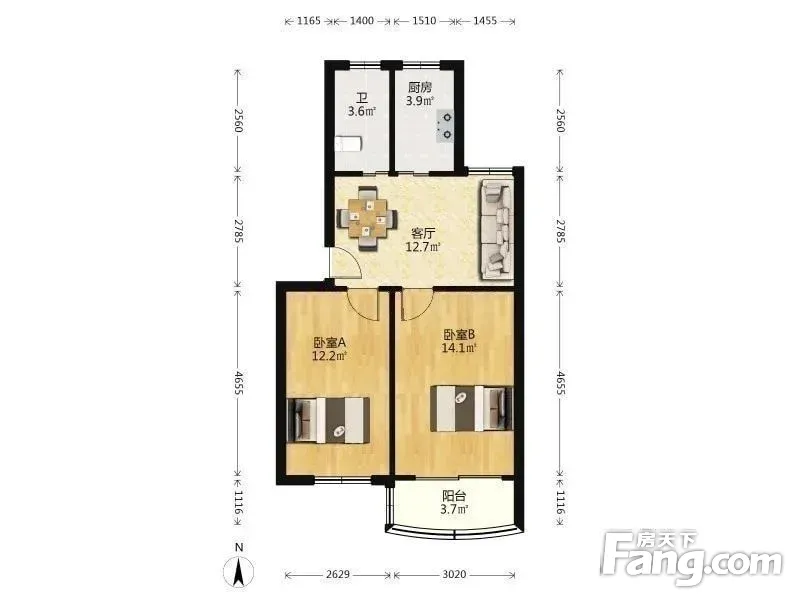 户型齐全,主打户型方正,明卫,明厨,客厅朝南二居